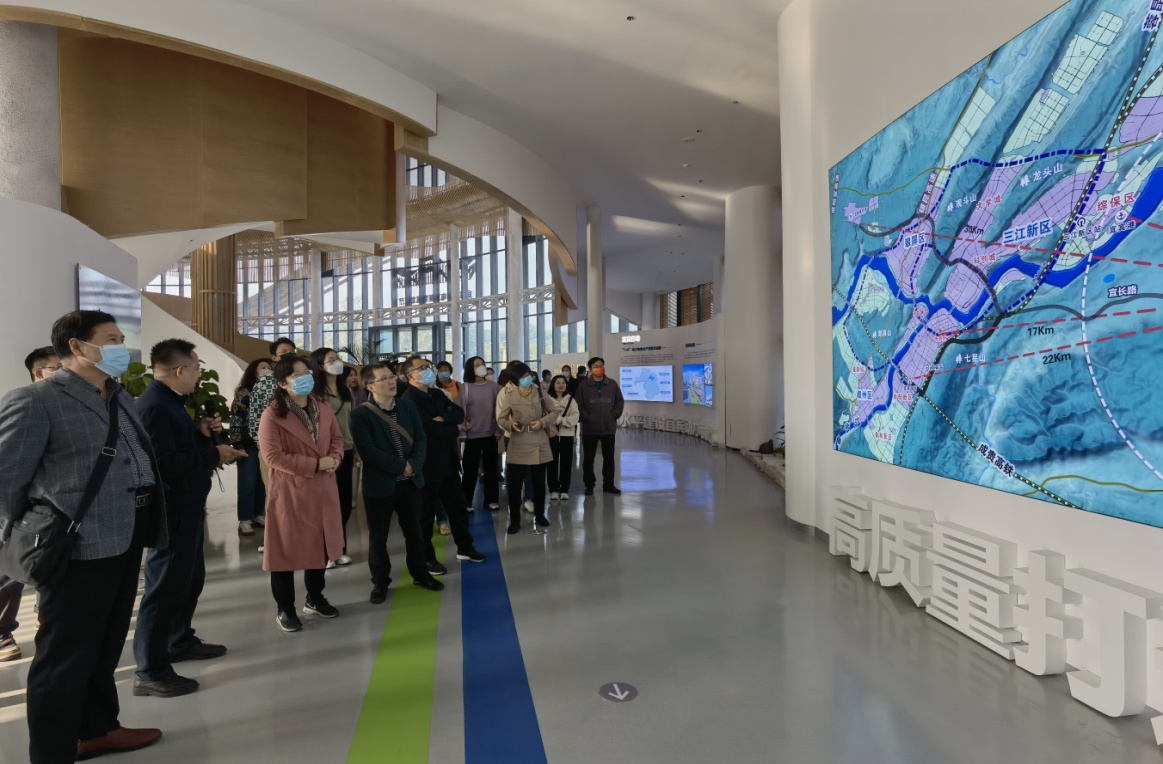 11月19日上午,william威廉英国党总支书记叶林一行人来到动力电池特色小镇,长江工业园区党工委委员、规建处处长郭平带领老师们参观园区规划展厅、观景平台,讲解了长江工业园区的建设背景、发展现状与未来规划,园区建设将习近平经济思想和生态文明思想全方位、全过程地贯彻其中,充分体现绿色低碳的新发展理念。