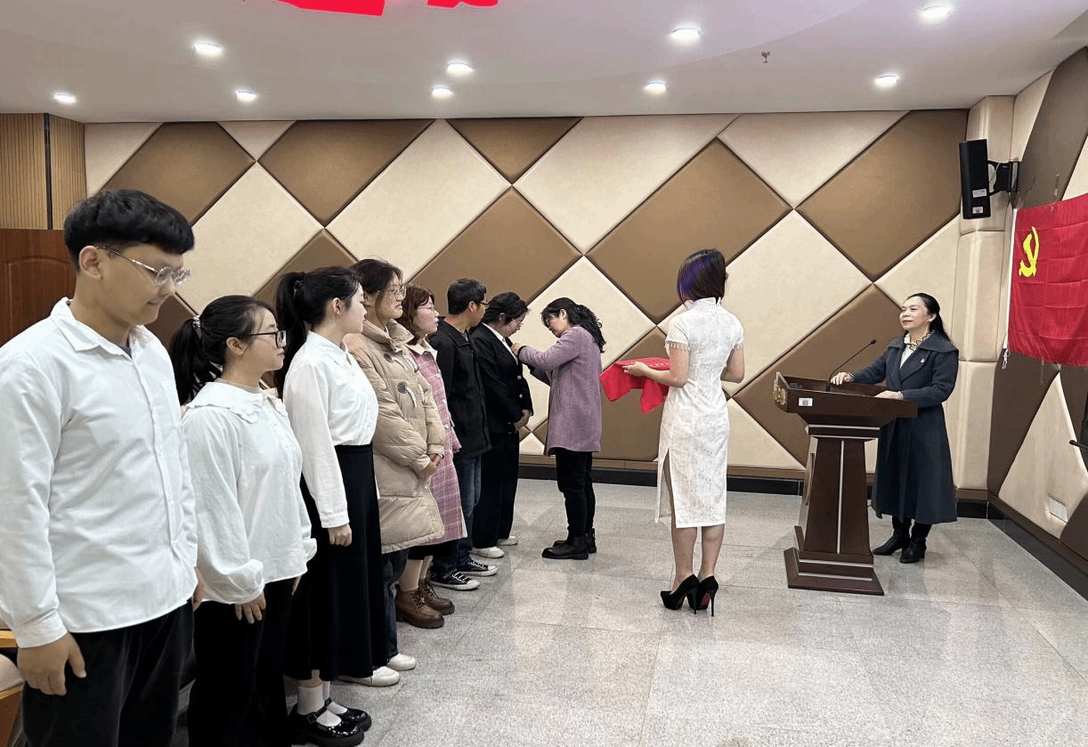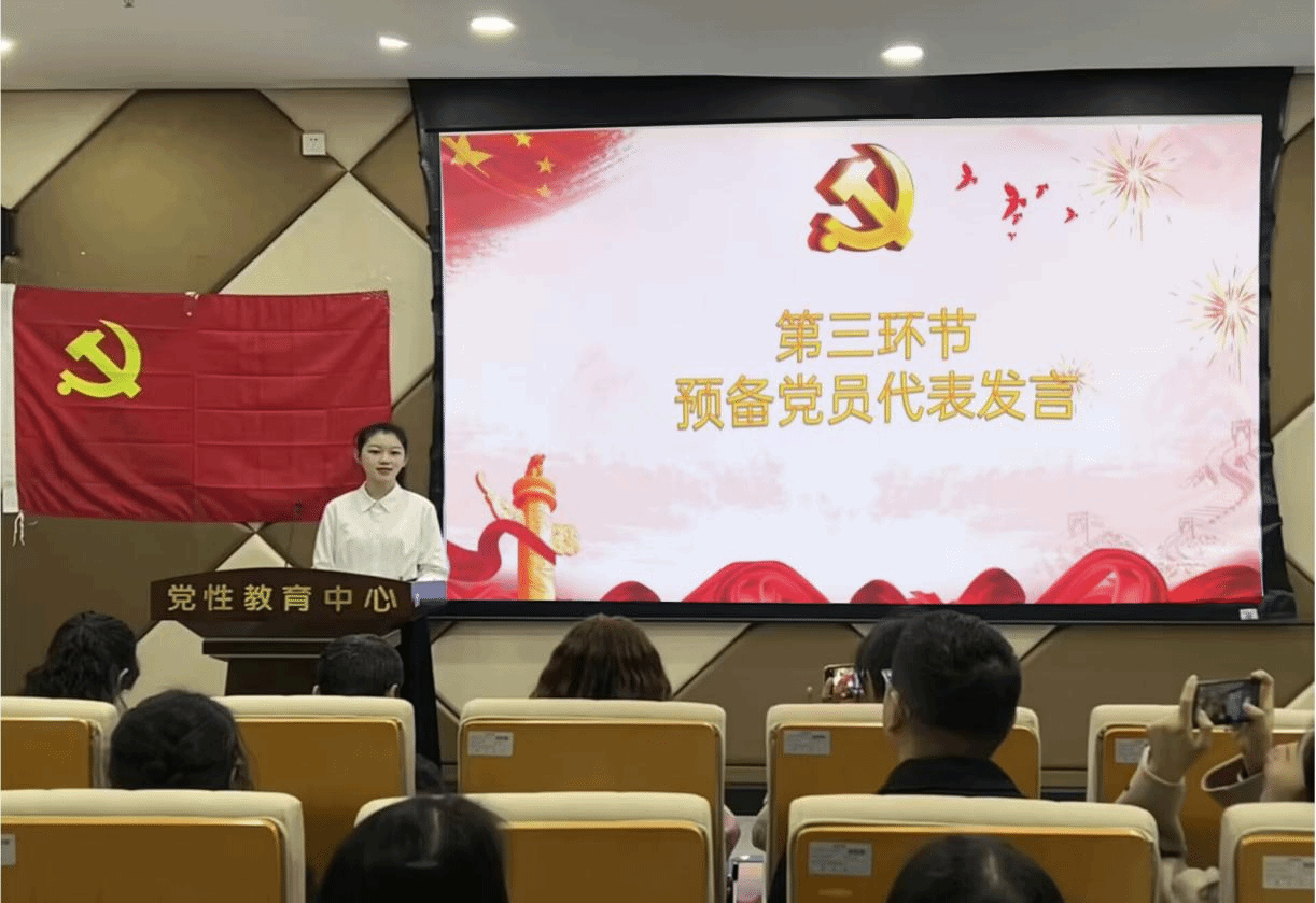 随后,新党员代表邓雅婷发言。她表示今后将时刻以党员的标准要求自己,坚定理想信念,勇于担当尽责,积极开拓进取,身体力行发挥好带头示范作用。