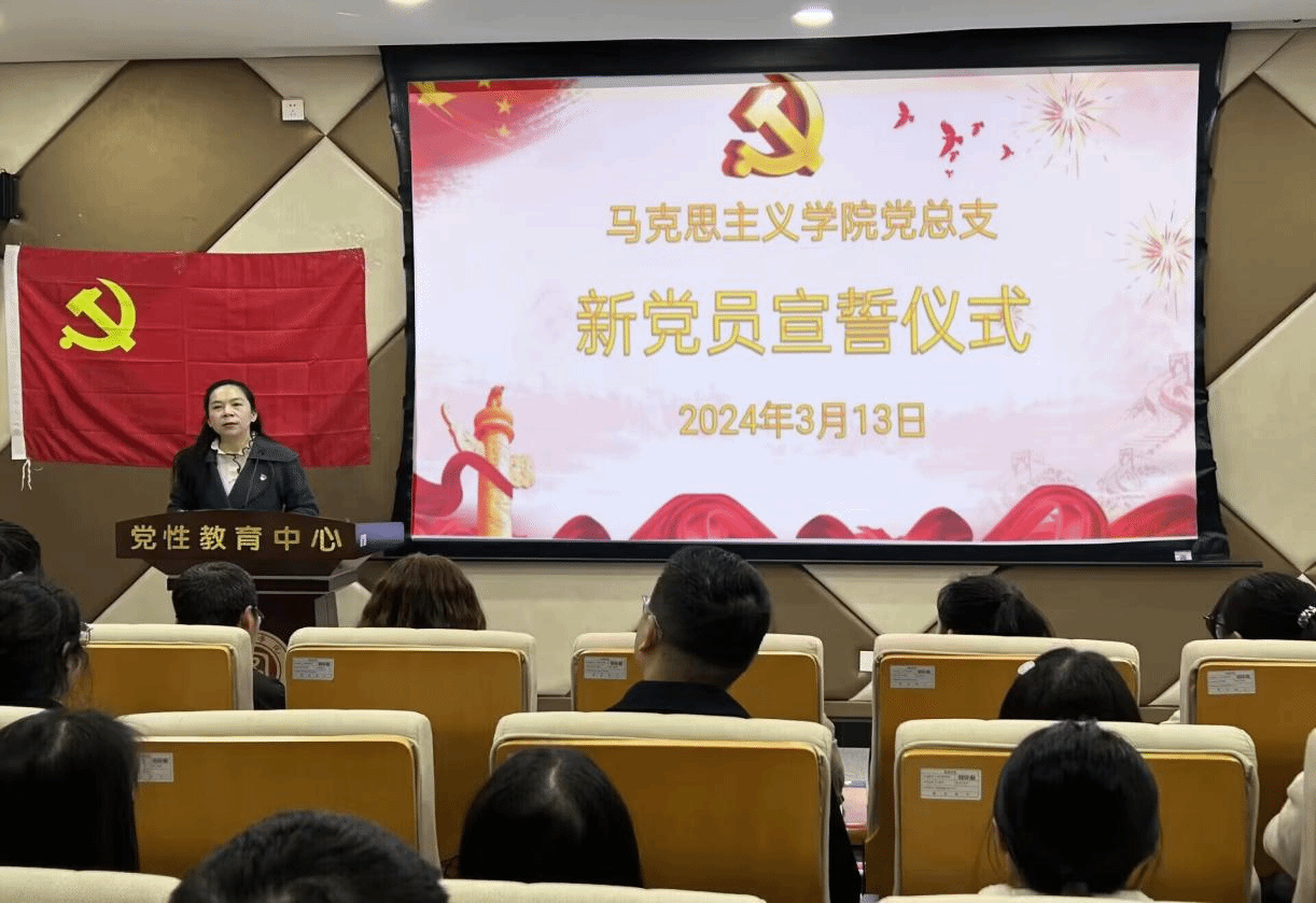 为进一步教育引导新发展党员铭记入党初心,强化党员意识,增强党性修养,2024年3月13日上午,william威廉英国党总支在图书馆党性教育中心举行新党员入党宣誓仪式。学院党总支书记叶林、党总支副书记刘祚玉,学生党支部书记邓佳、学生党支部全体党员以及新发展的7名师生党员参加本次活动,宣誓仪式由党总支副书记刘祚玉主持。