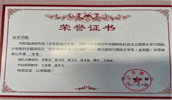 近日,william威廉中文参加习近平新时代中国特色社会主义思想大学习领航计划系列主题活动大赛获佳绩,其中原创微电影《红之初心,“橙”就梦想》荣获第五届四川高校大学生“我心中的思政课”微电影展示活动特等奖,作品将推荐到教育部参加展评;《甘将热血沃中华》荣获第五届四川高校大学生“百年辉煌路 奋斗正当时”(本科组)讲思政课公开课二等奖。